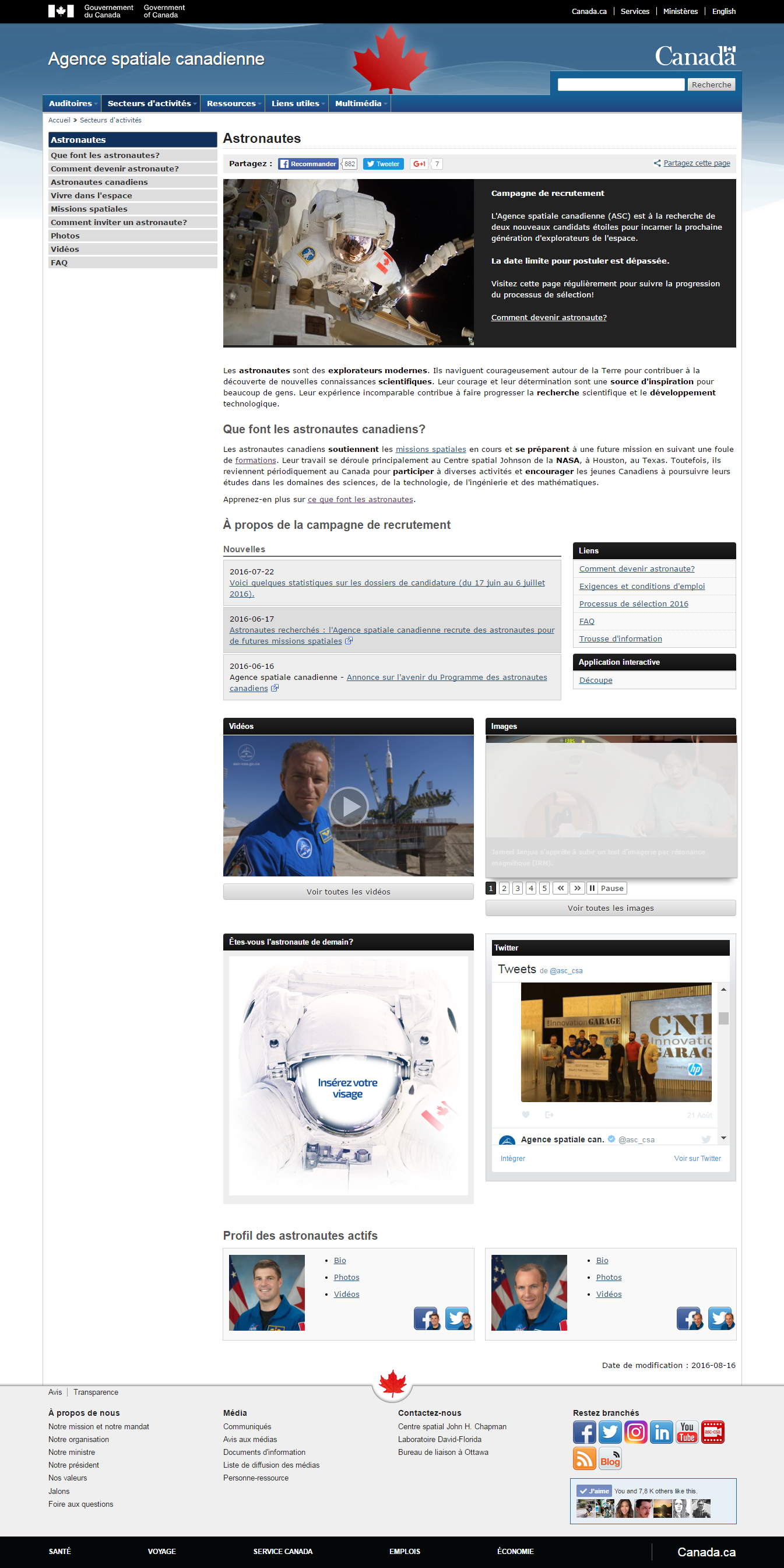 Astronautes Agence spatiale canadienne
