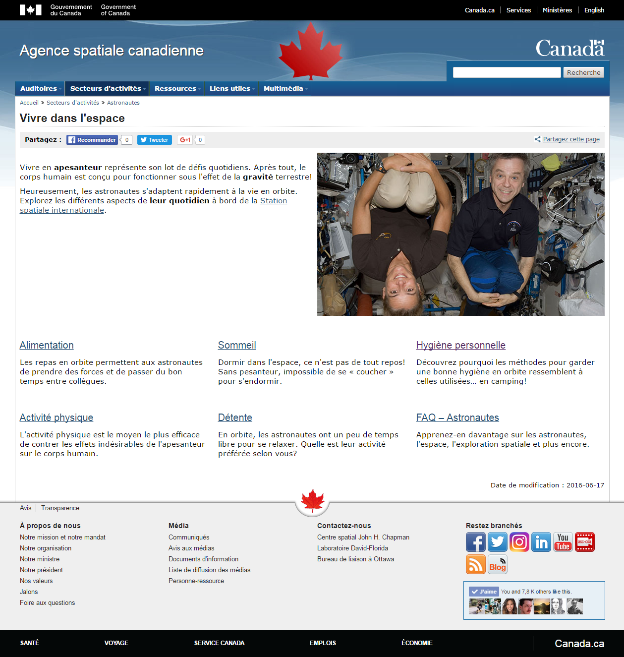Vivre dans l espace Agence spatiale canadienne